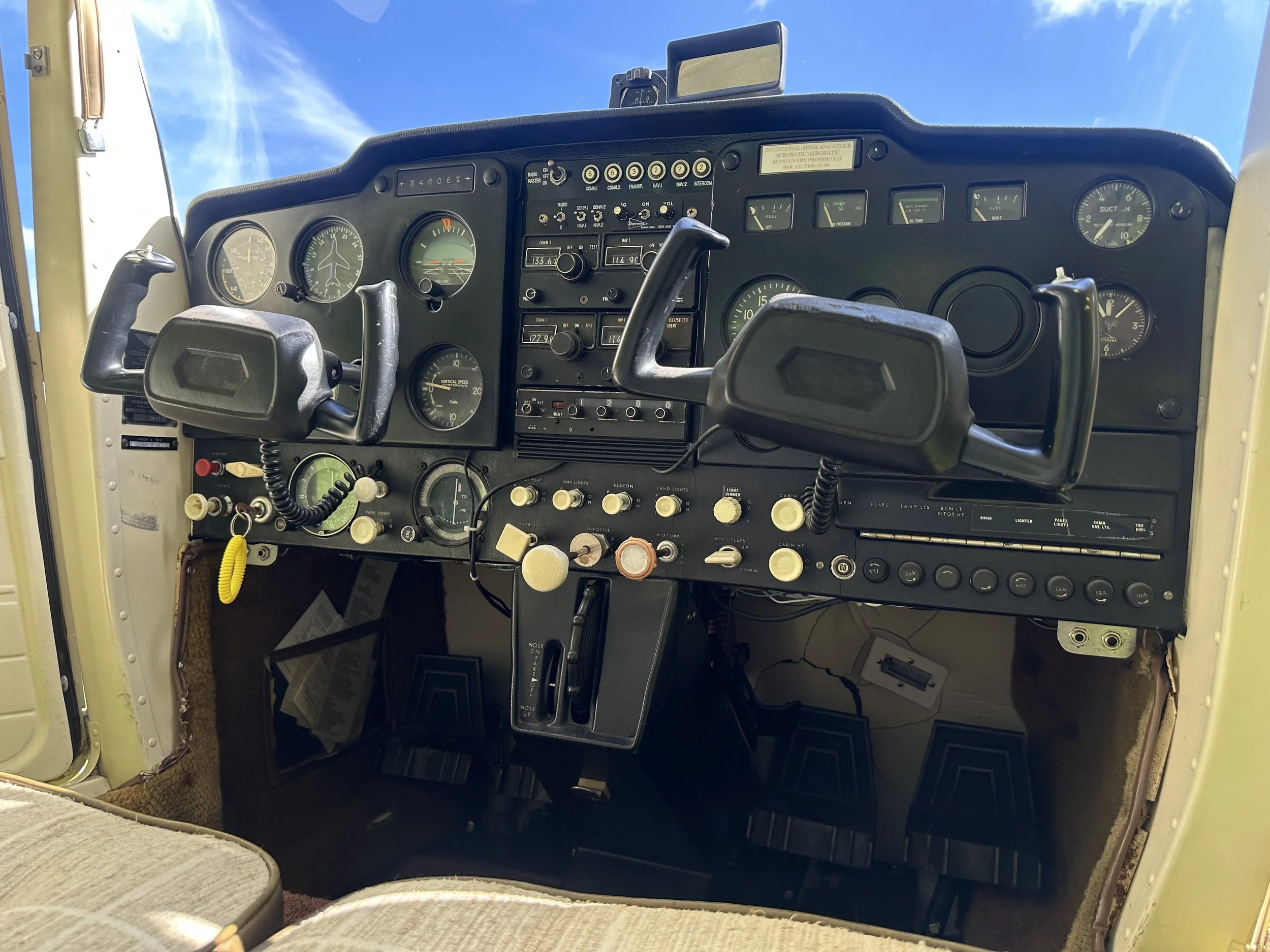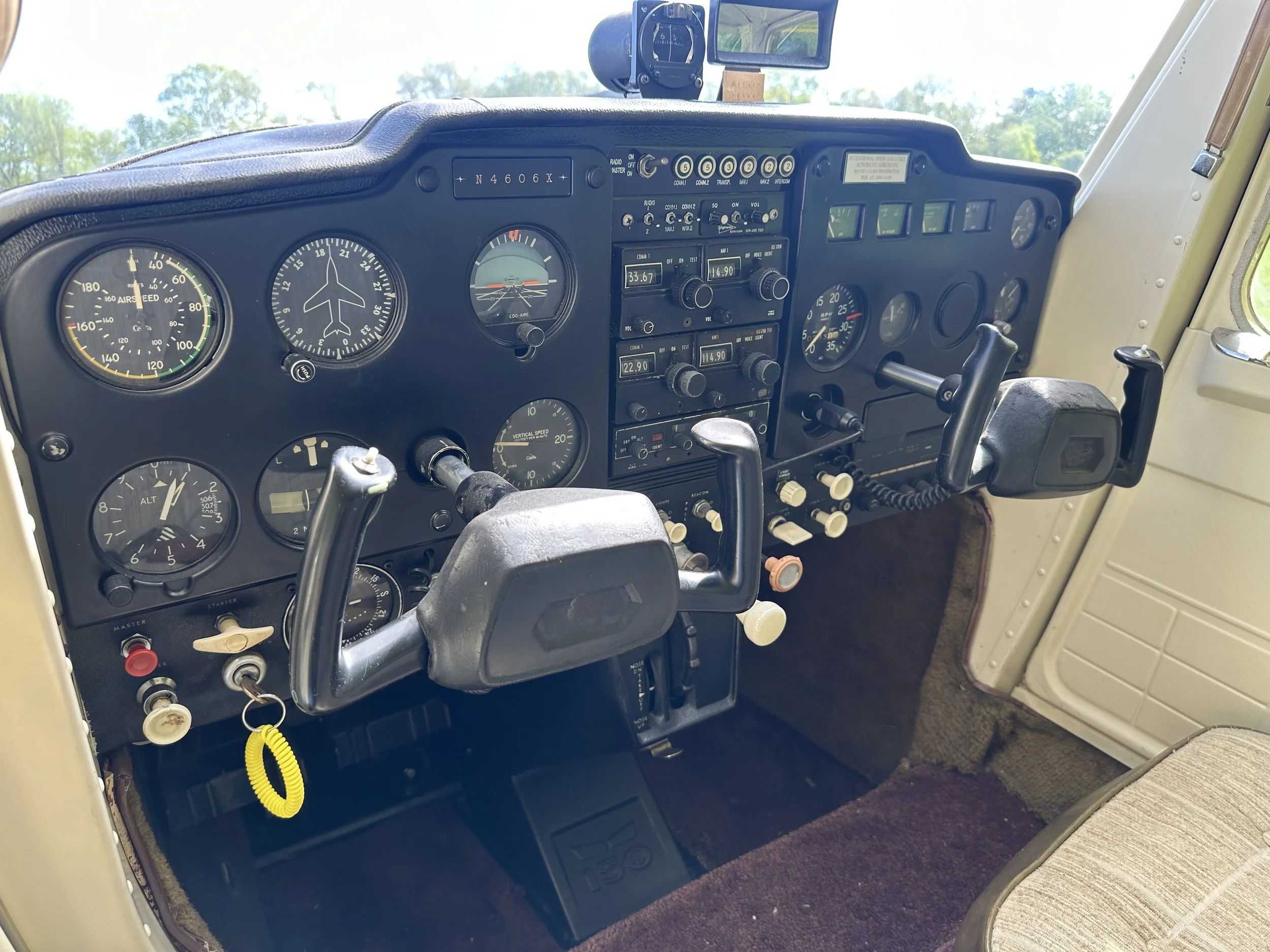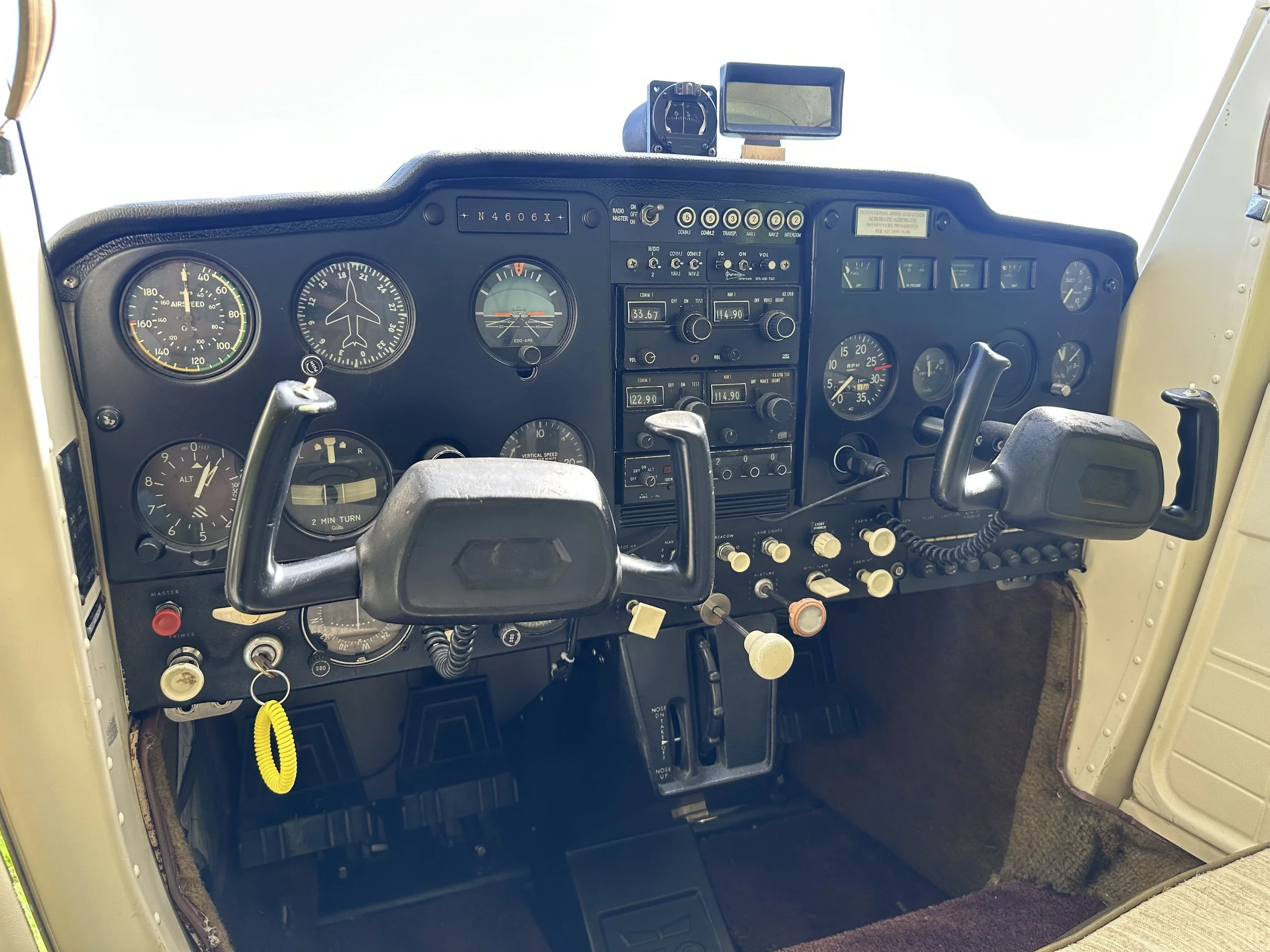 Inside, N4606X features a clean, simple cockpit layout with dual yokes and classic Cessna ergonomics.