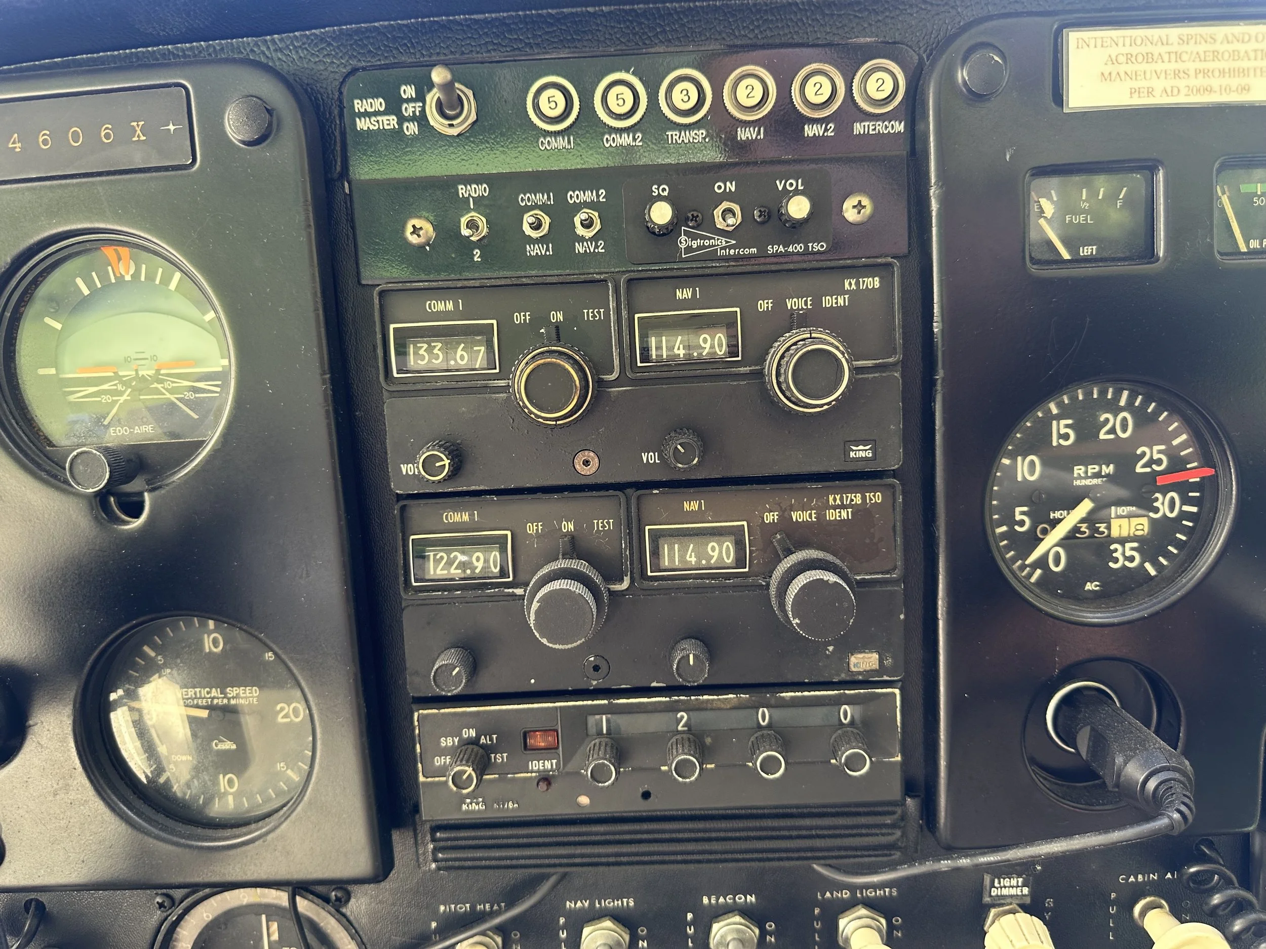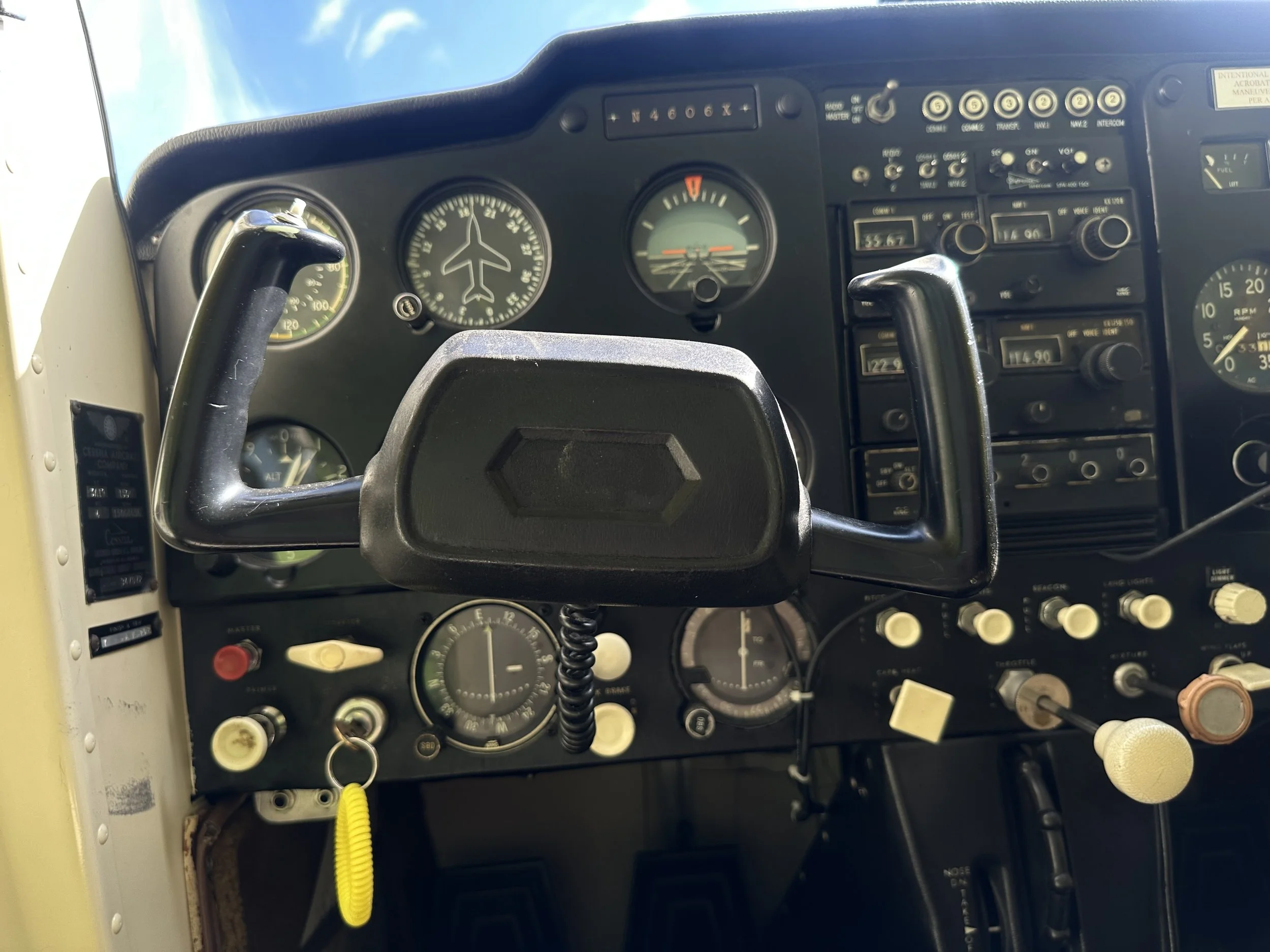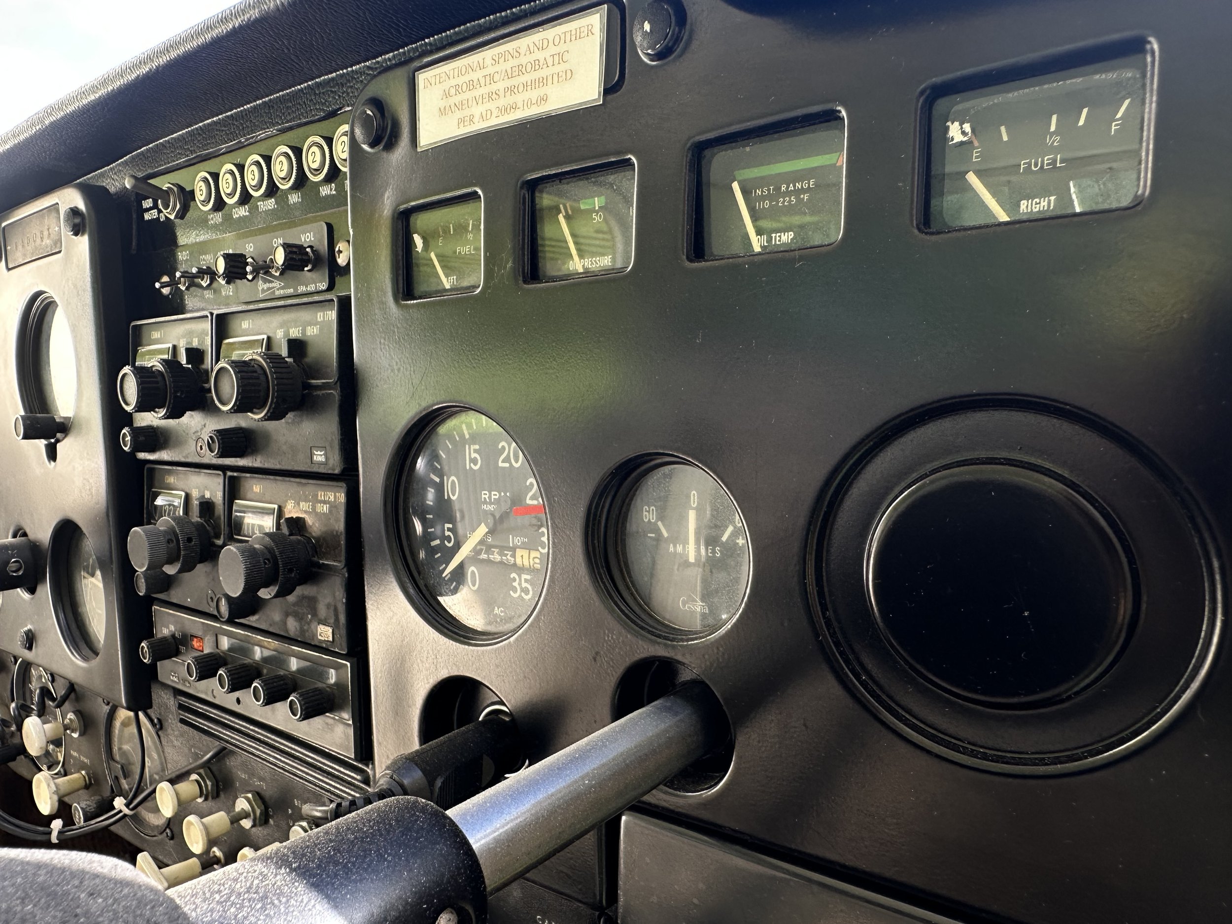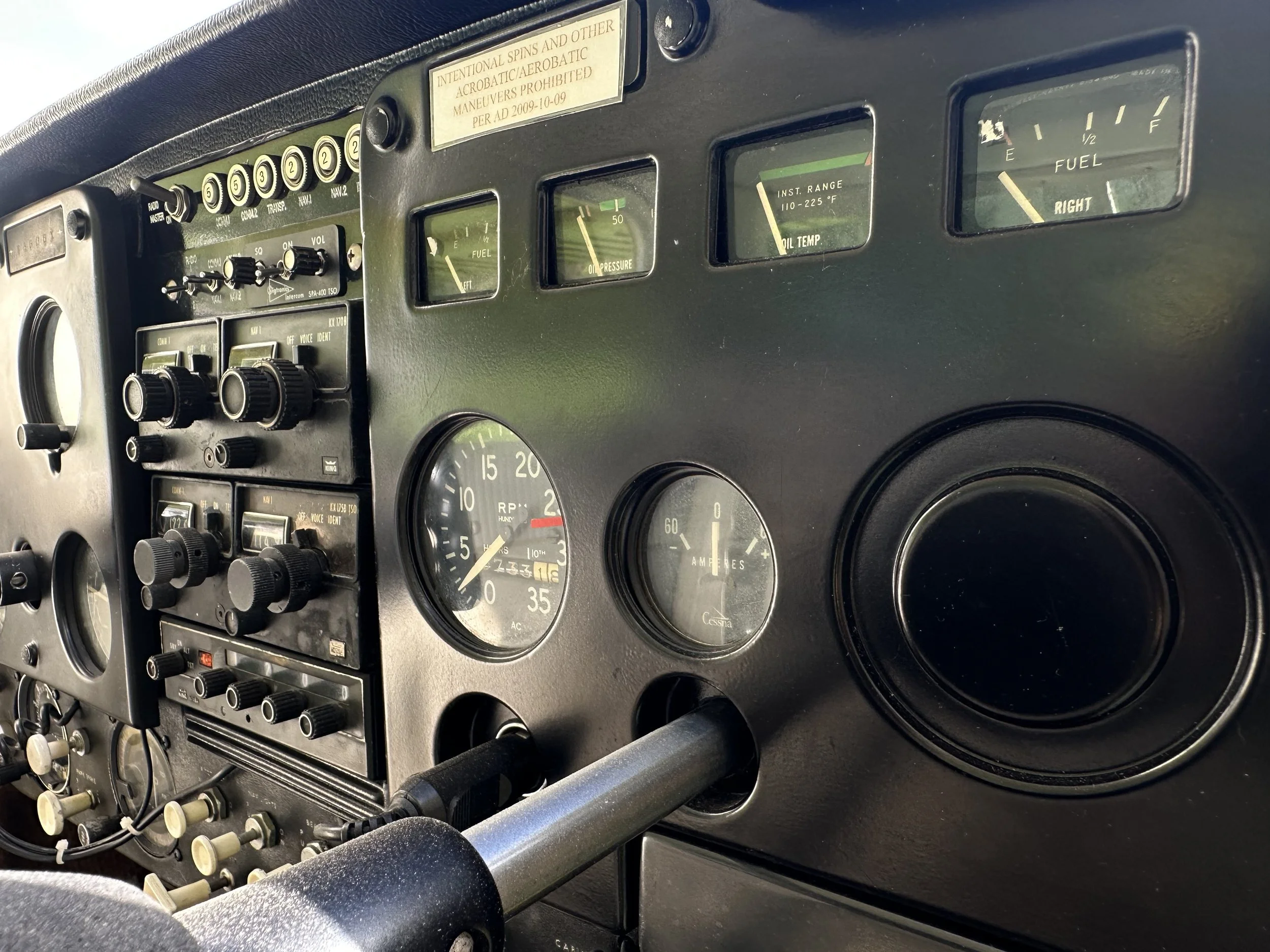 Inside, N4606X features a clean, simple cockpit layout with dual yokes and classic Cessna ergonomics.